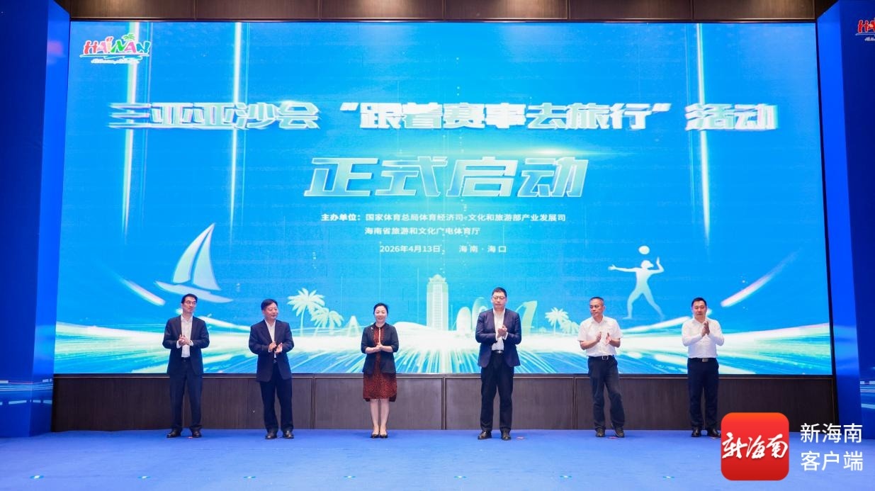 4月13日,2026年第二届海南自由贸易港全球产业招商大会——旅文广体消费专场招商活动暨三亚亚沙会“跟着赛事去旅行”活动启动仪式在海口举行。
