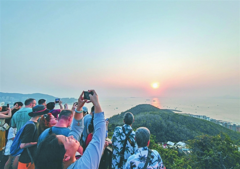 近日,鹿回头风景区,众多国内外游客前来游玩,与亲朋好友,登高望远享受生活的惬意。三亚日报记者 刘琪成 摄