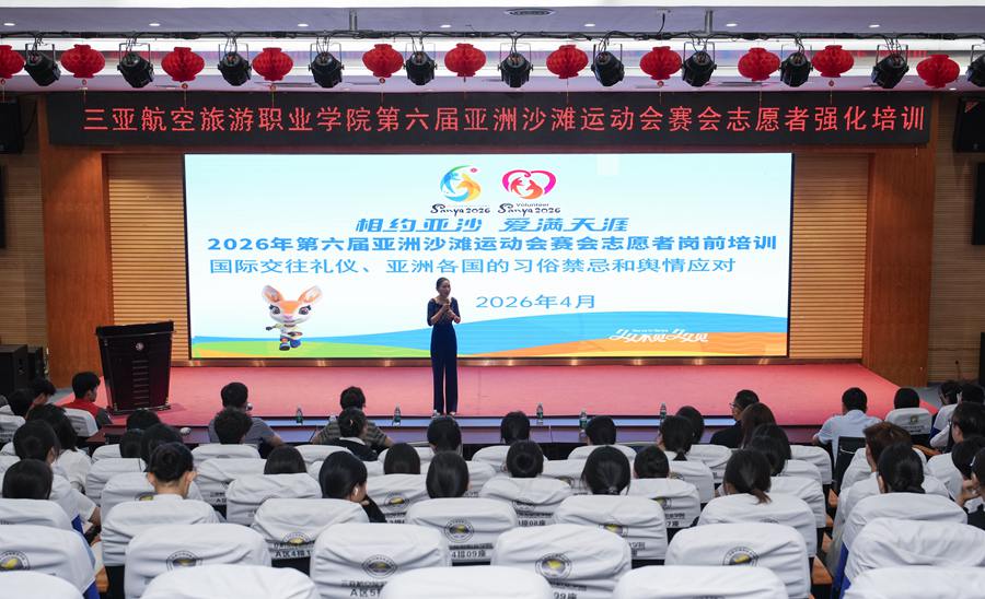 据介绍,三亚航空旅游职业学院共有207名学生和9名带队老师承担开闭幕式场馆志愿服务工作。“作为国际赛事,三亚亚沙会汇聚不同国家(地区)、不同民族的参与者,彼此文化习俗存在差异,部分学生对此接触较少,因此专业的沟通技巧与礼仪规范培训尤为重要。志愿者的个人形象与言行,不仅代表自身与学校,更展现着三亚的城市形象。”三亚航空旅游职业学院校团委老师刘虹表示。